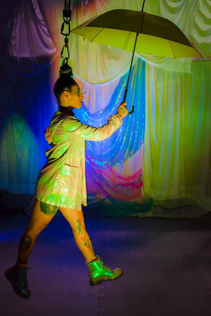 "Entre o alto e o chão, entre o riso e o risco, a cena se costura em momentos de vertigem e intensidade. Desta vez, a trilha sonora surge de uma pesquisa diferente: trocamos o som ao vivo pelos vinis, criando atmosferas que conduzem o público por uma viagem sensorial com energia e respiros", explica Mariana Camargo, artista e produtora do espetáculo. A escolha pelo vinil representa uma nova experimentação na trajetória do grupo, que tradicionalmente trabalha com música autoral e ao vivo. "É uma obra que percorre diferentes estados de energia, começando suave, ganhando intensidade e chegando ao ápice de movimento e emoção antes de desacelerar", completa a produtora.