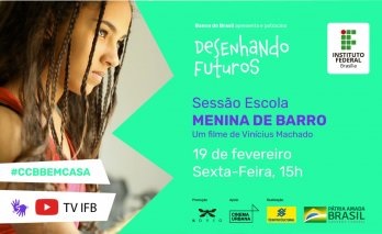 A TV IFB, canal do Instituto Federal de Brasília no YouTube, vai exibir, no próximo dia 19 de fevereiro, às 15h, o filme ?Menina de Barro?, do cineasta Vinicius Machado.A exibição faz parte do festival ?Desenhando Futuros: Mostra Infantojuvenil de Cinema e Inovação", que está acontecendo no Centro Cultural do Banco do Brasil (CCBB), de 2 até 21 de fevereiro. A exibição será seguida de um debate sobre a temática do filme, com Carlos Eduardo Ramos, psicólogo do Campus Samambaia do IFB, com mediação da idealizadora e diretora-geral do evento "Desenhando Futuros?, Daniela Marinho.