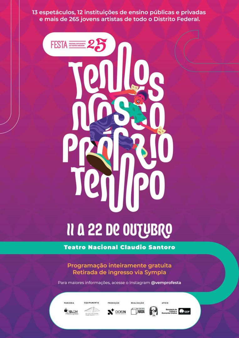 Com a temática "Temos nosso próprio tempo", os espetáculos prometem levar ao palco do maior espaço cultural do DF uma energia contagiante envolta em enredos autorais e adaptações clássicas, resultantes de uma jornada de oficinas ministradas pelos próprios professores e diretores participantes do Festival. Na edição deste ano, sobem ao palco mais de 265 estudantes do DF, em uma programação incrível: