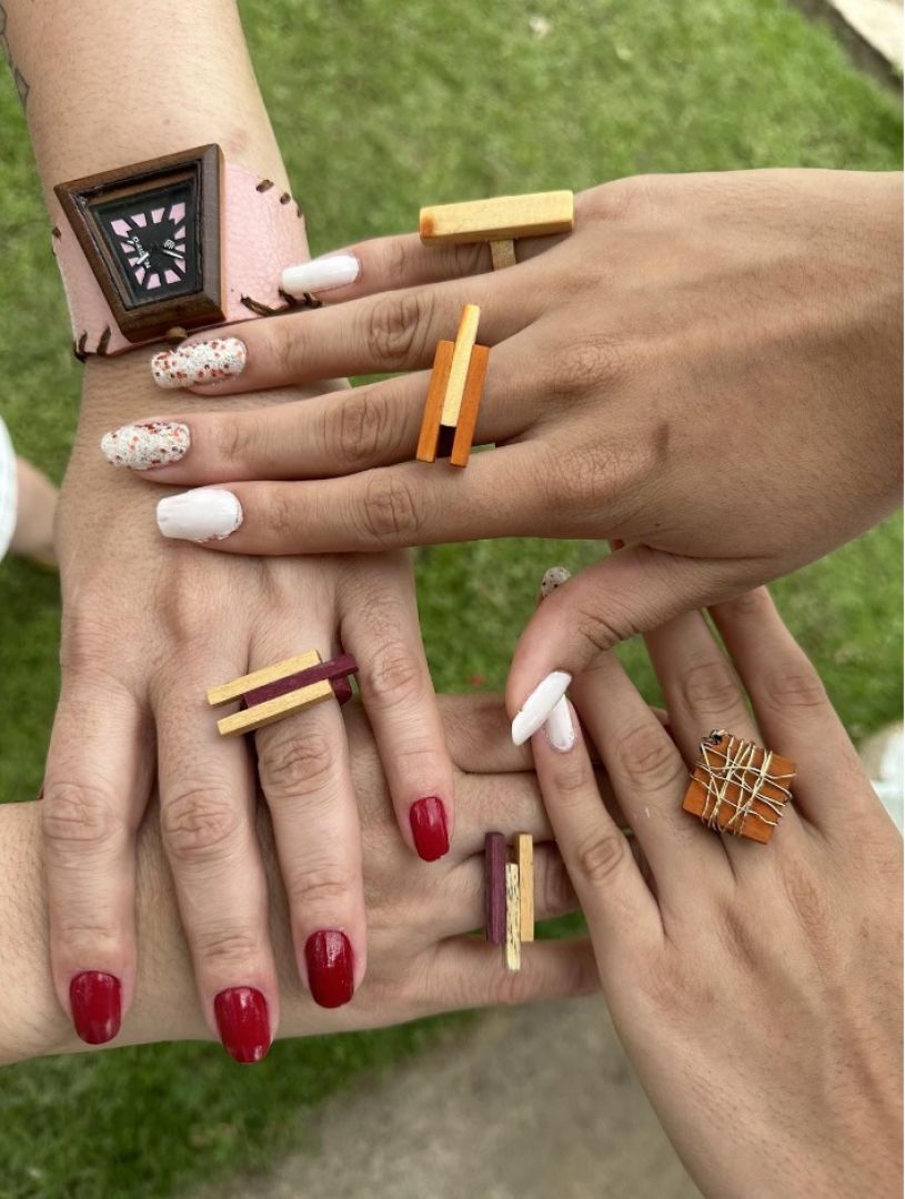 A designer explica que seus acessórios são inspirados em formas geométricas e “trazem uma proposta de conexão com a natureza e conscientização do impacto dos resíduos, para além da adornação, visando conscientizar, estimular e difundir um estilo de vida mais sustentável partindo de pequenas atitudes”.