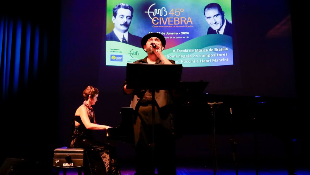 Na noite deste domingo (14), a Escola de Música de Brasília (EMB) apresentou o concerto de abertura do 45º Curso Internacional de Verão de Brasília (Civebra). A iniciativa é considerada referência no cenário musical mundial. O evento, aberto ao público, foi marcado por homenagens aos renomados músicos/compositores Giacomo Puccini e Henry Mancini, que deixaram um legado na história da música.