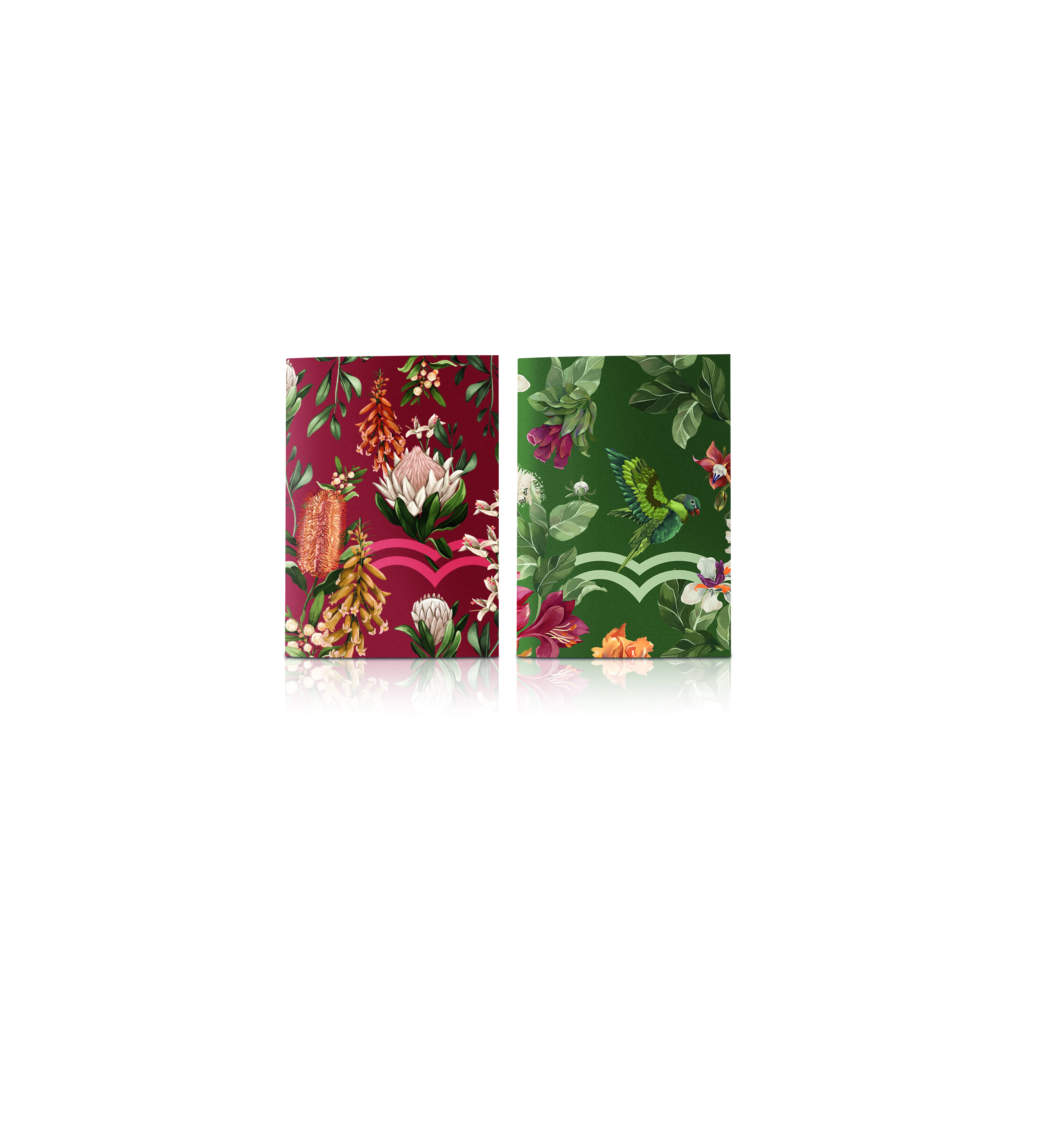 O Presente Natura Crer Para Ver Duo Cadernos é ideal para você presentear ou colecionar. ele contém dois cadernos de 80 páginas e um lindo envelope para presente. as estampas exclusivas foram feitas pelo artista Lezio Lopes.