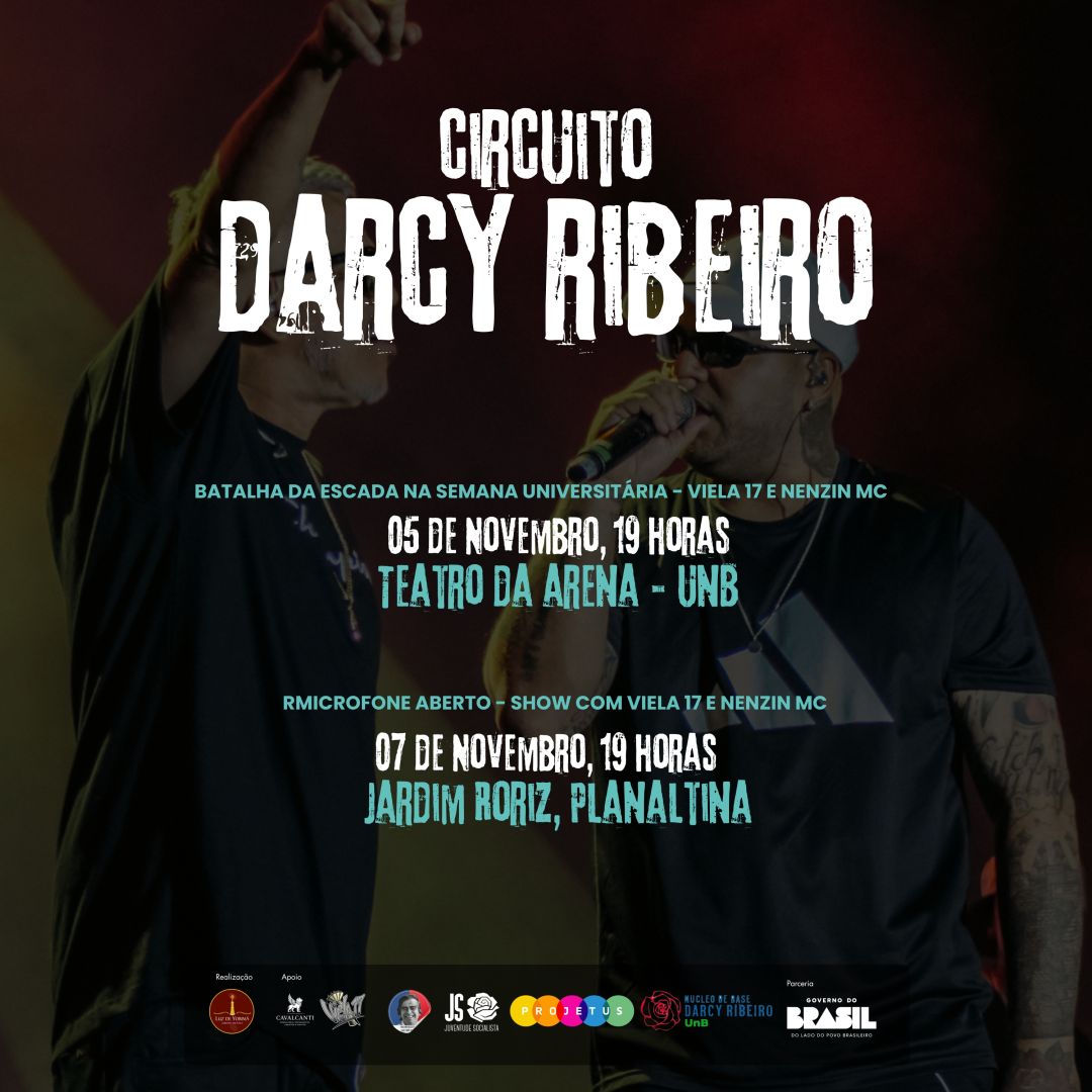 A Rede Cultural Darcy Ribeiro segue circulando por diversas regiões administrativas do Distrito Federal, conectando arte, política e território. Na próxima semana, os rappers Japão do Viela 17 e Nenzin MC, nomes de peso da cena hip-hop, se apresentam em dois encontros imperdíveis e gratuitos: na quarta (5), às 17h, no Teatro de Arena da UnB, e na sexta (7), às 19h, no Jardim Roriz, em Planaltina.