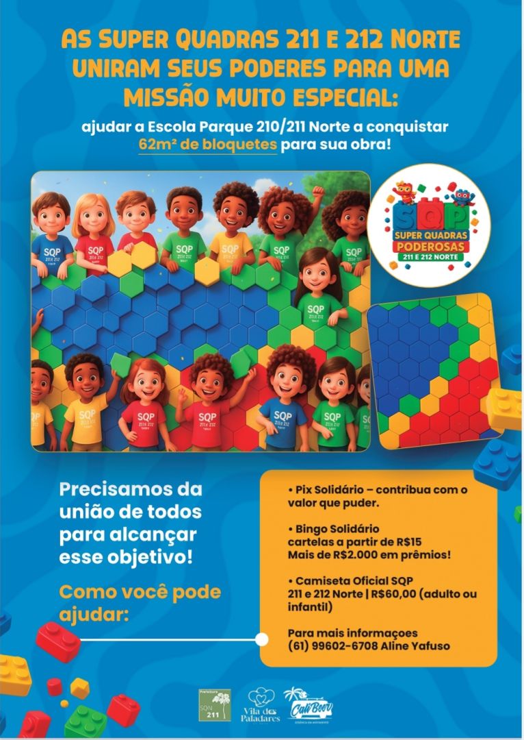 Além do caráter festivo, a iniciativa tem um propósito solidário: apoiar a Escola Classe 210/211 Norte na conclusão de sua obra de melhoria da infraestrutura. A escola precisa de 70m² de bloquetes, com custo estimado em R$ 10 mil, e parte da arrecadação do evento será direcionada para essa causa.