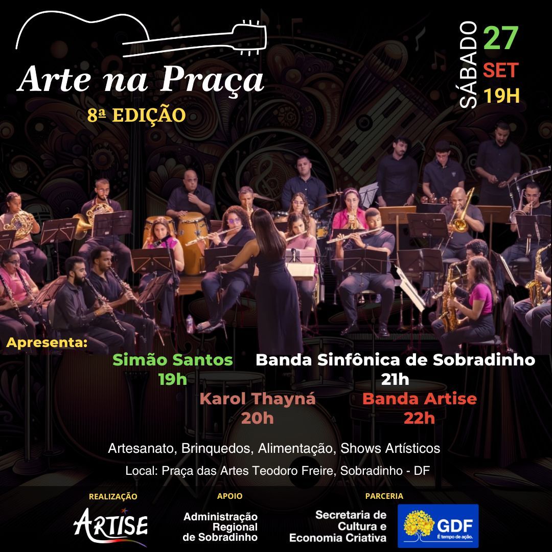 "Vamos apresentar ao público, nesta VIII edição do ARTE NA PRAÇA, a maior vitrine artístico-cultural de Sobradinho e do DF. Será um grande presente para as pessoas que prestigiam as produções da ARTISE", garante Alex Paz.