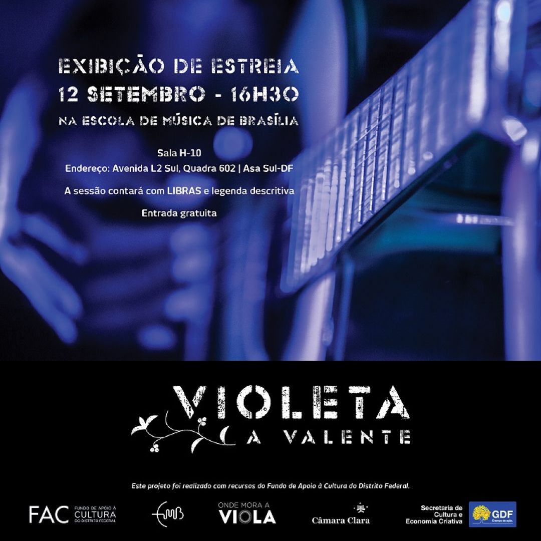 No próximo dia 12 de setembro de 2024, às 16h30 na Escola de Música de Brasília, acontece a exibição de estreia do documentário "Violeta, A Valente".