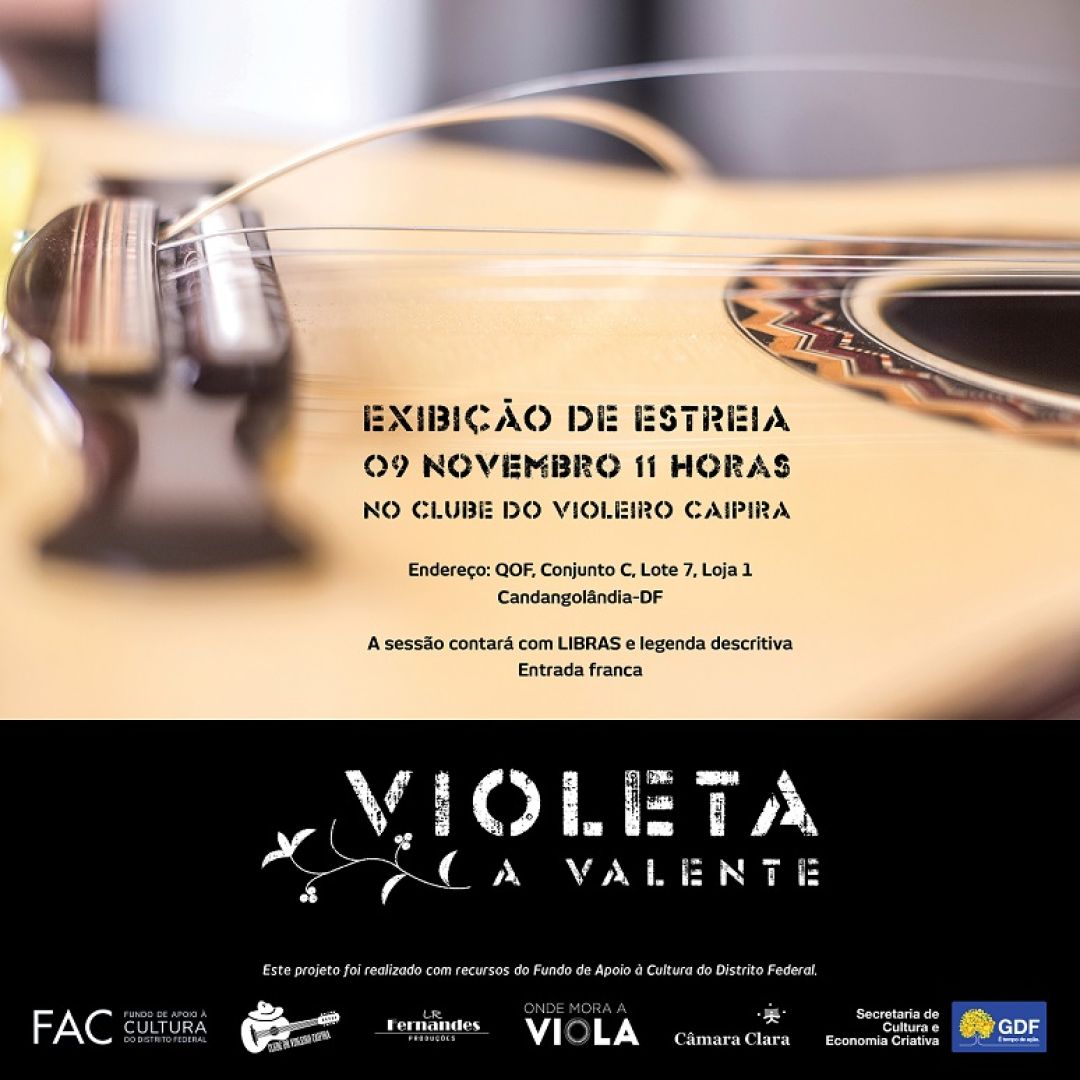 No próximo dia 09 de novembro de 2024, às 11 horas no Clube do Violeiro Caipira, em Candangolândia-DF, acontece a exibição de estreia do documentário "Violeta, A Valente".