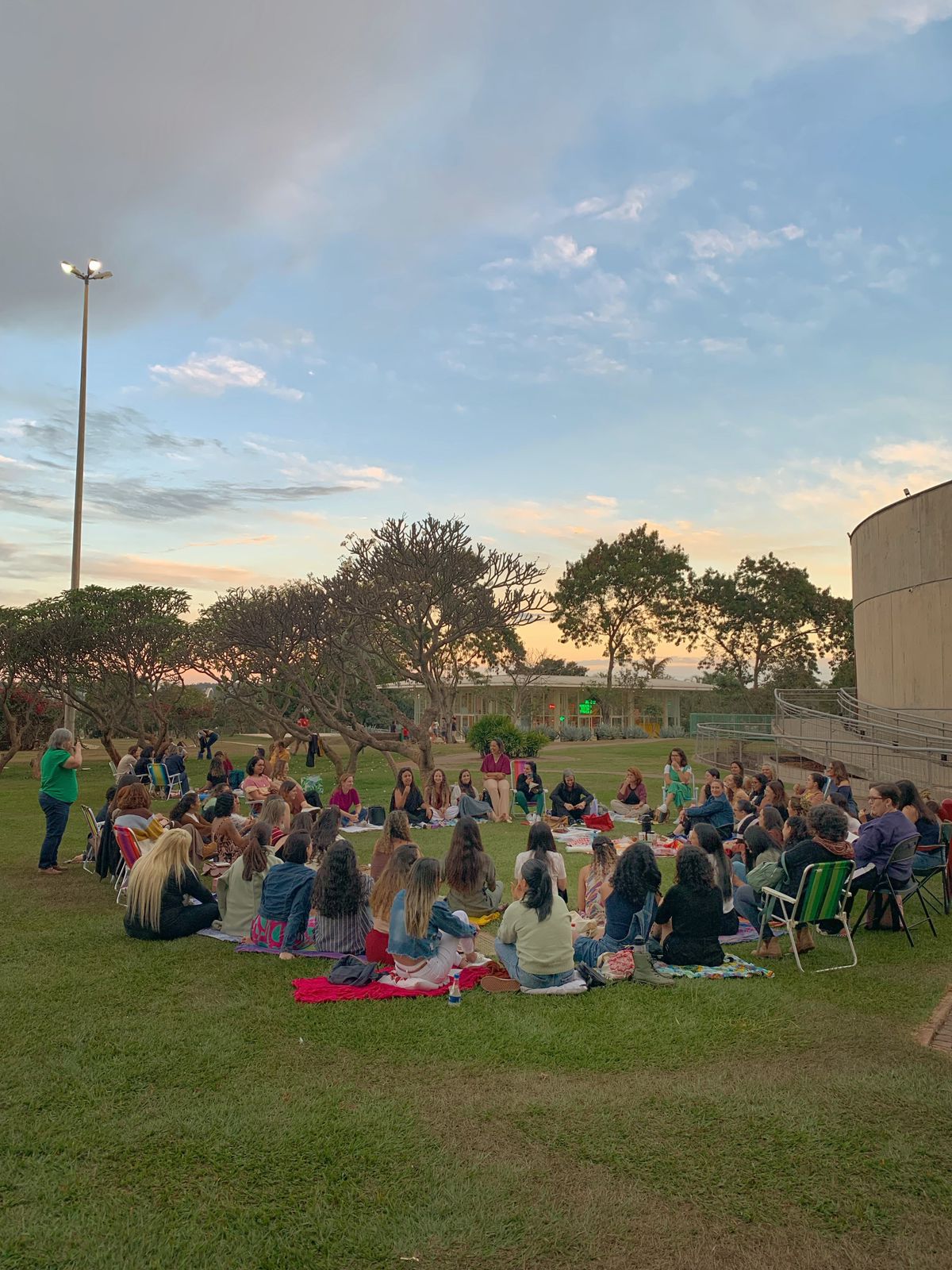 As primeiras rodas de conversa aconteceram em uma livraria, reunindo 27 mulheres no primeiro encontro e 45 no segundo. A partir do terceiro, o espaço ficou pequeno. Vieram, então, encontros no CCBB e, finalmente, o convite para ocupar a Biblioteca Nacional de Brasília, sonho realizado em agosto. Desde então, a Praça da Língua Portuguesa passou a ser palco de rodas intensas e acolhedoras, sempre marcadas por trocas afetivas e novas percepções sobre as histórias lidas.