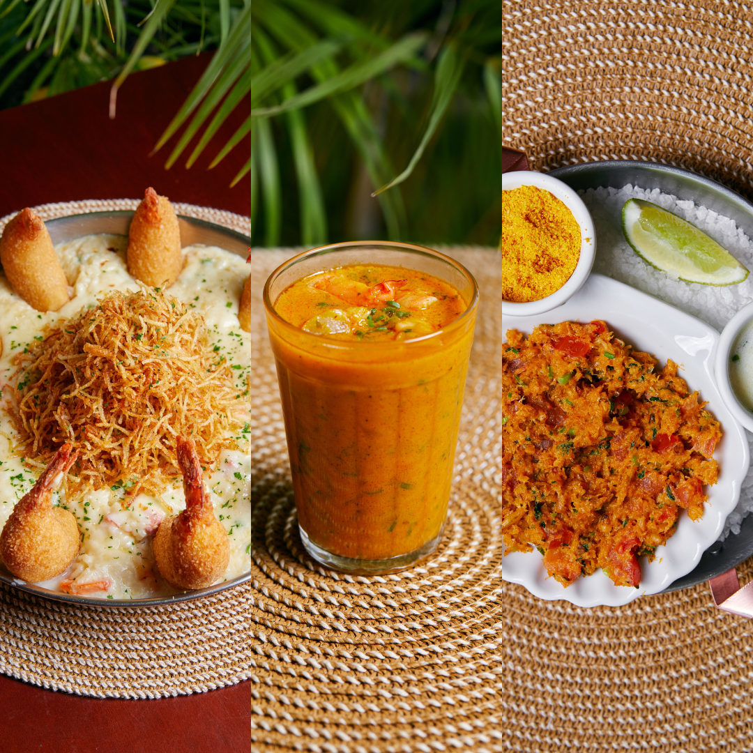 Todas as mesas são literalmente pé na areia e o cardápio traz os principais pratos do Coco Bambu, que realiza a operação, e também novidades exclusivas, como a caranguejada e o arrumadinho de carne seca.
